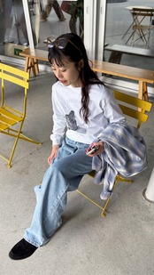 淡いトーンはデニムからスラックスまではばひボトムスと相性が良く