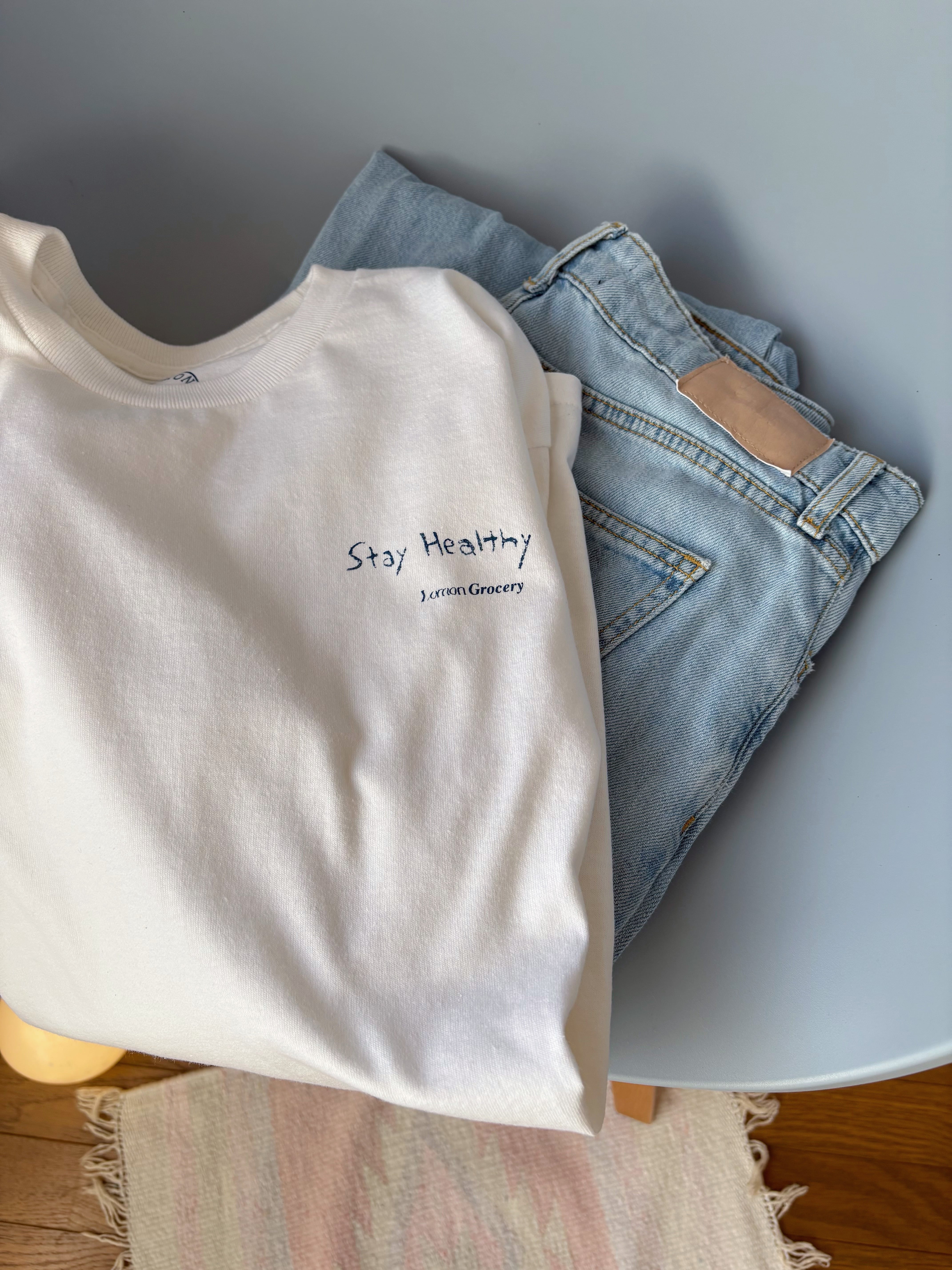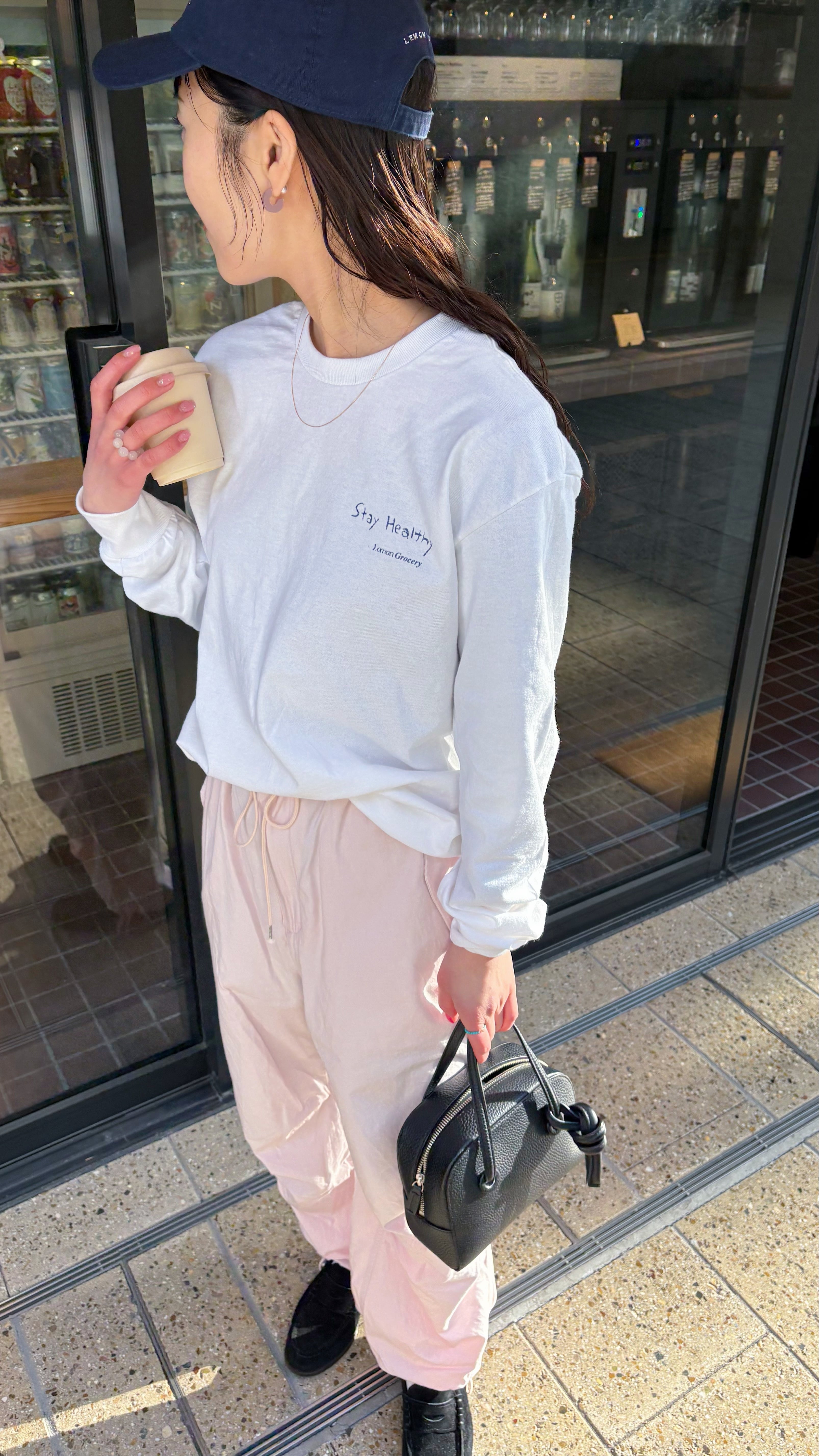 Lemongroceryが掲げるメッセージをトレンドのクレヨンタッチで仕上げたシンプルなロンT